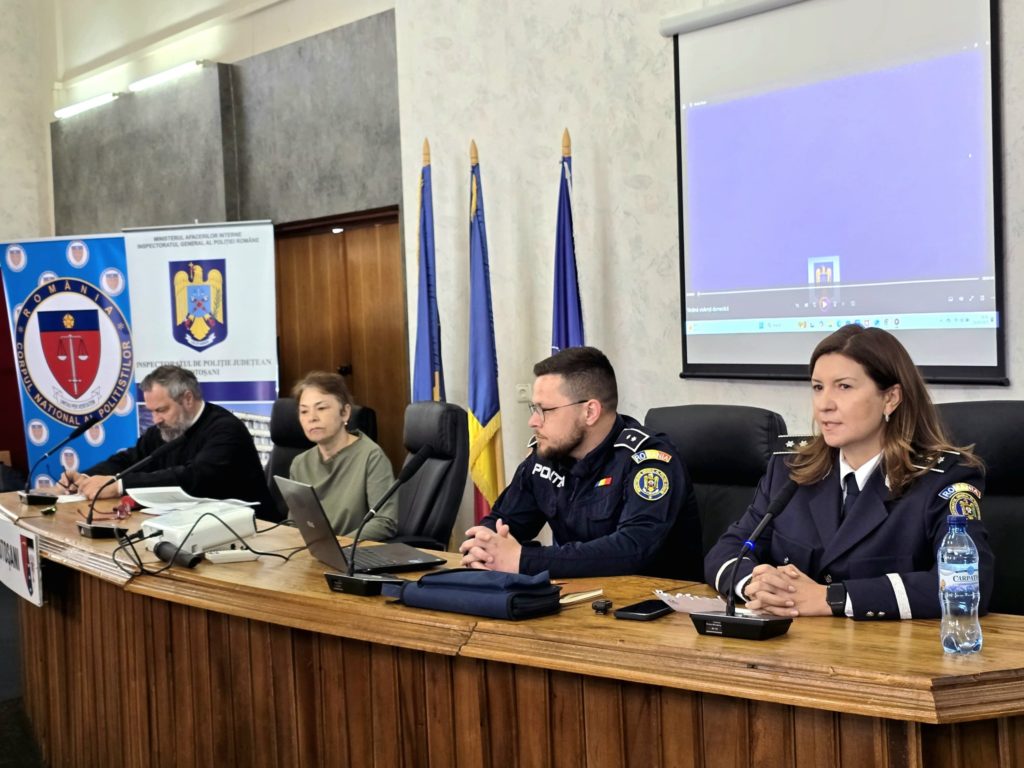 Specialiştii din cadrul IPJ Botoşani şi cei ai DGASPC Botoşani au susţinut o scurtă prezentare a modalităţilor de intervenţie în cazul semnalării violenţei în familie, a serviciilor de care pot beneficia victimele. De asemenea, reprezentantul Protopopiatului Botoşani a subliniat importanţa implicării Bisericii în activitatea de prevenire a violenţei în familie la nivelul comunităţilor locale.