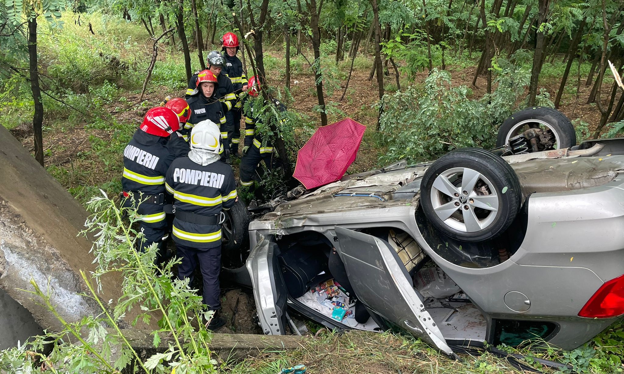Salvatorii au găsit autoturismul răsturnat în afara părții carosabile, iar cele cinci victime, printre care și un minor, au fost scoase de către pompieri și predate echipajelor medicale.
