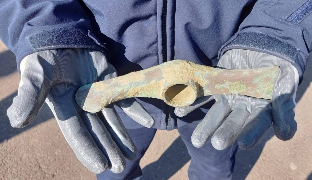 În seara zilei de joi, 20 martie, plutonierul adjutant șef Romică Păduraru, jandarm pasionat de istorie și detectorist amator autorizat legal, a descoperit un topor din aramă, în formă de cruce, în pădurea din zona comunei Brăești.