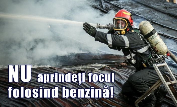 Atenționarea pompierilor: Nu aprindeți focul folosind benzină sau alte lichide inflamabile!