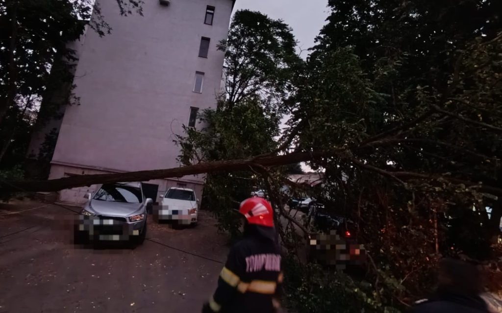 Autoturisme distruse de un arbore prăbușit peste ele (foto)