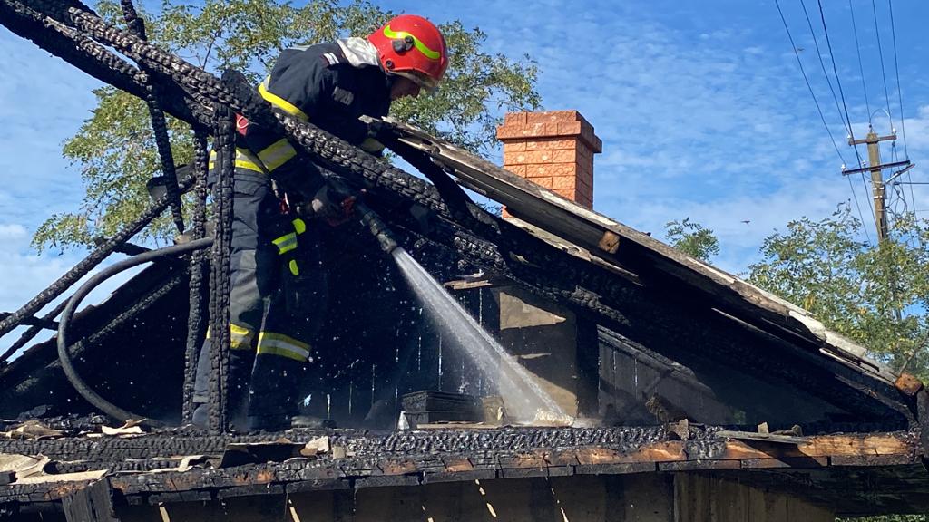 Casă în pericol de a fi distrusă de flăcările izbucnite de la coșul de fum defect
