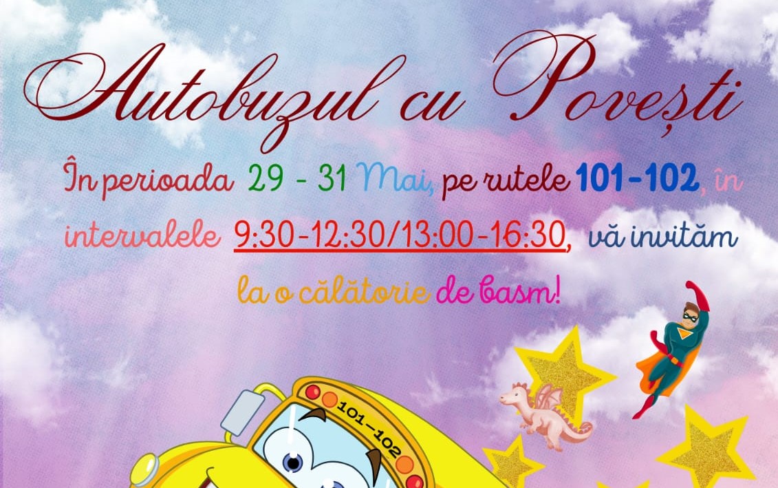 Pe cele două rute, 101 și 102, în intervalele orare 09.30 – 12.30 și 13.00 – 16.30, cei mici își vor putea întâlni eroii din basme, în Autobuzul cu Povești.