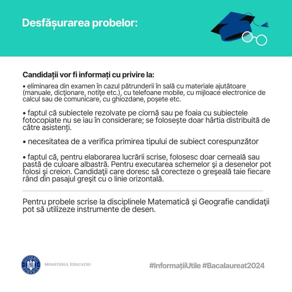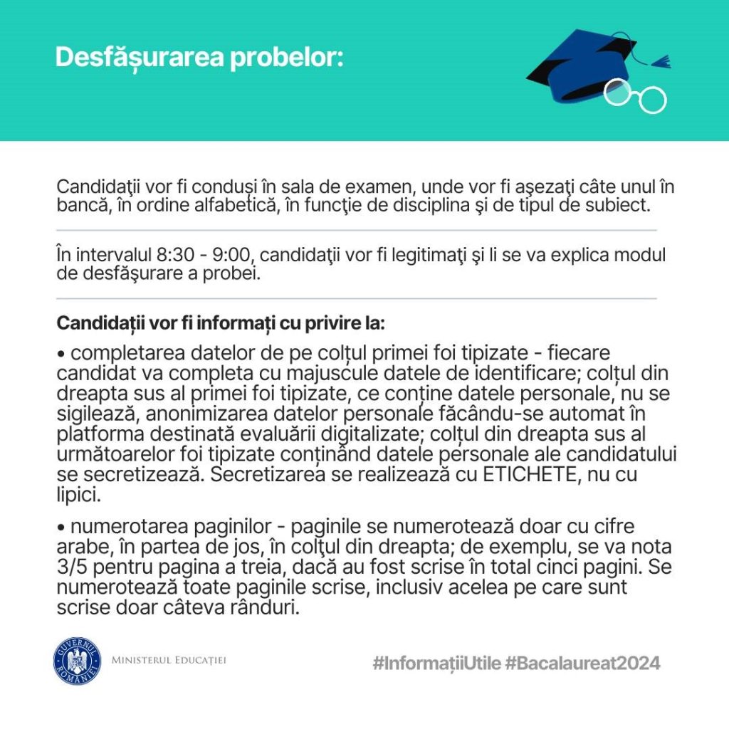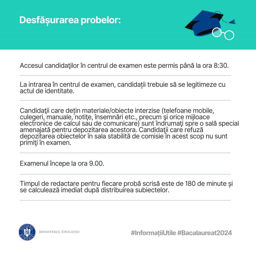 De luni, 1 iulie 2024, încep probele scrise ale Examenului Național de Bacalaureat – sesiunea iunie-iulie 2024