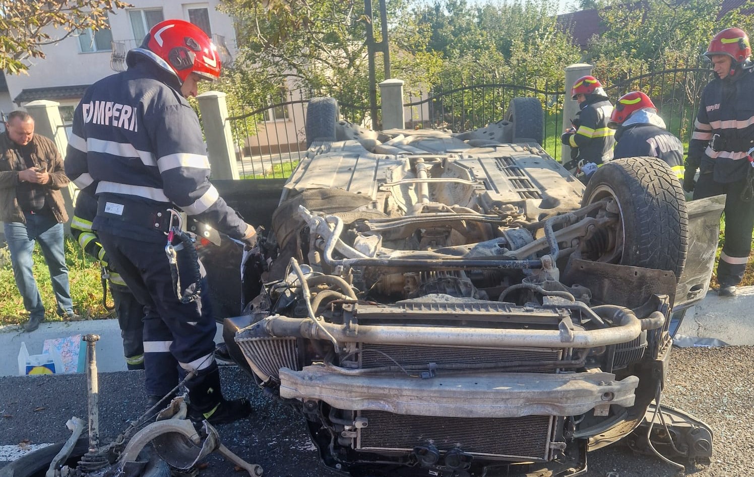 • Pompierii au asigurat măsurile de prevenire a incendiilor, fiind deconectate bornele bateriilor.