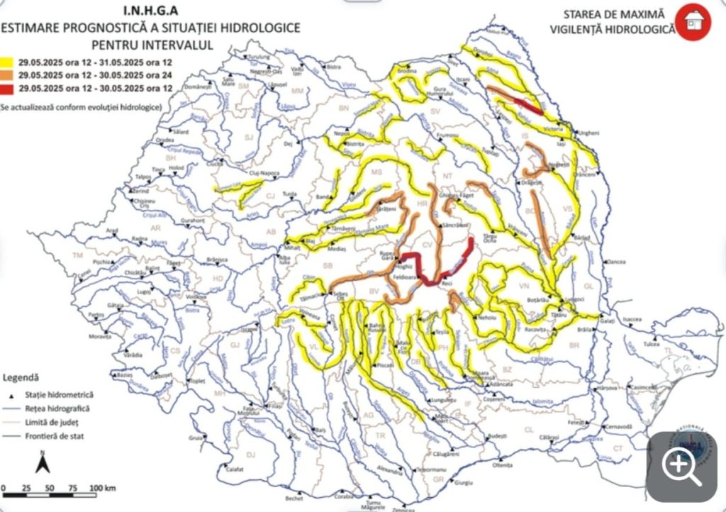 De asemenea, în intervalul 29 mai, ora 12.00 – 30 mai, ora 24.00, râul Miletin se află sub incidența unui Cod Portocaliu de inundații.