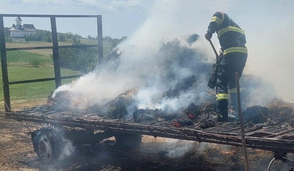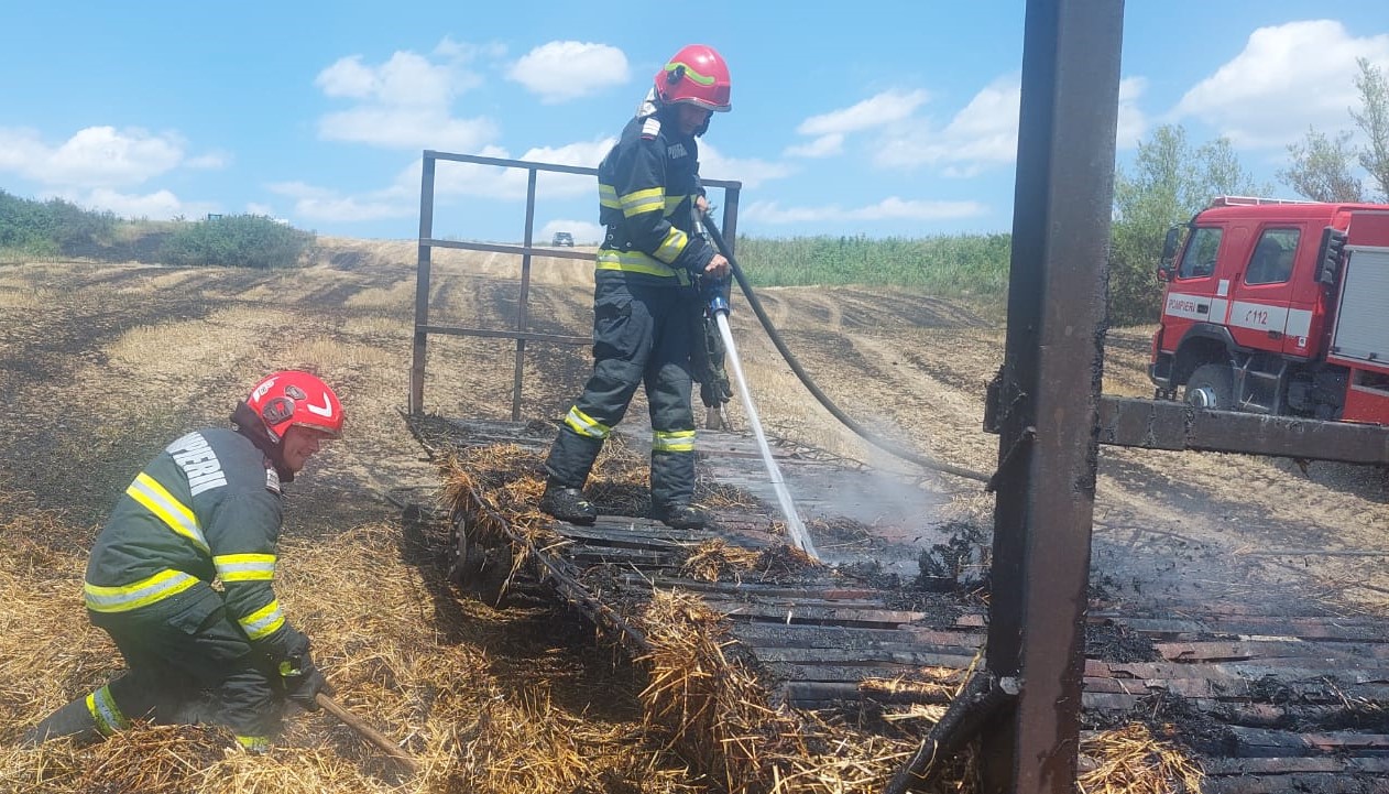 Incendiu provocat de un utilaj agricol folosit pentru formarea baloților de paie (foto)