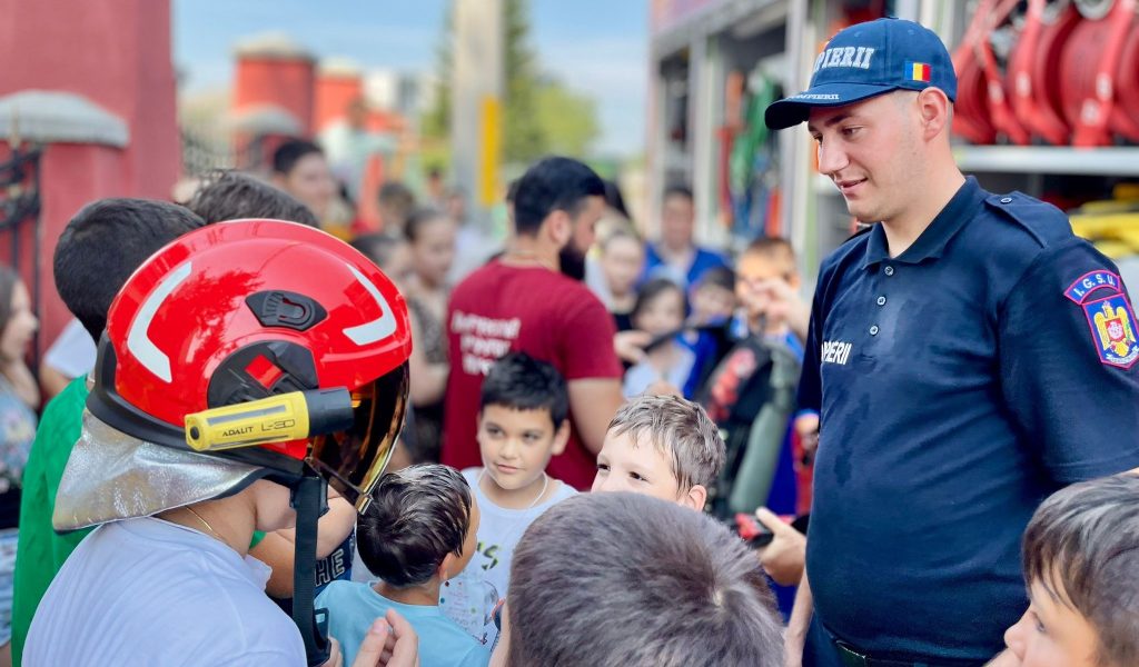 Copiii au mai aflat și în ce situații pompierii intervin cu autospecialele de stingere cu apă și spumă și descarcerare, dar și cum se folosește fiecare accesoriu. Au probat echipamentele de protecție folosite de salvatori pe timpul misiunilor și au testat presiunea furtunelor.