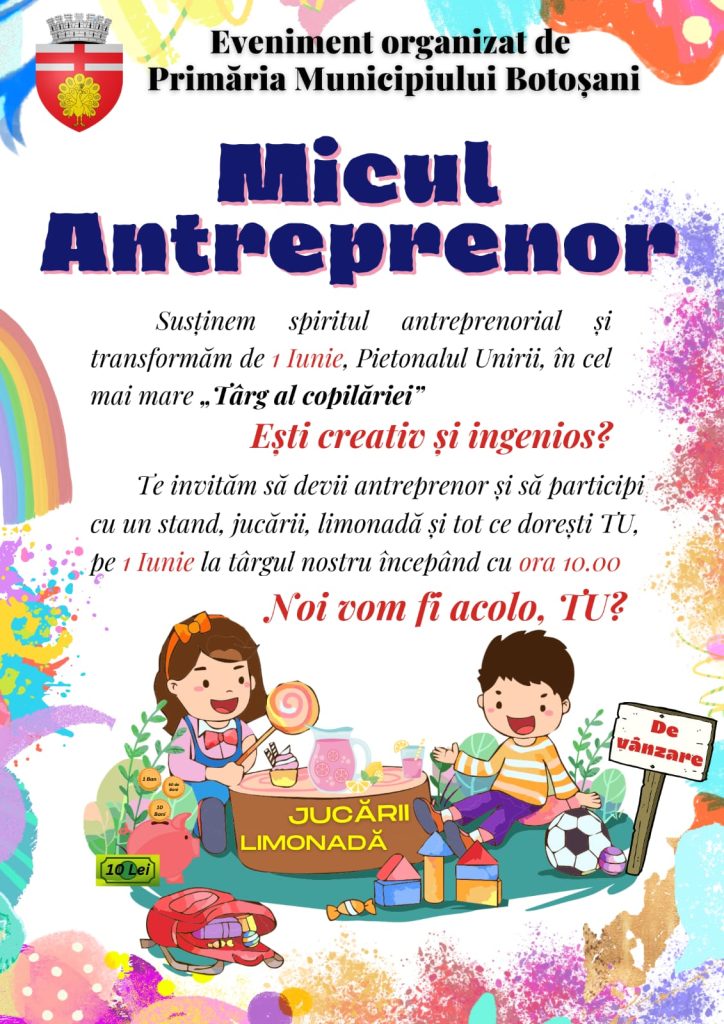 Și în acest an, toți copiii care au spirit antreprenorial sunt invitați să facă parte din proiectul „Micul Antreprenor” – Târgul Copilăriei.