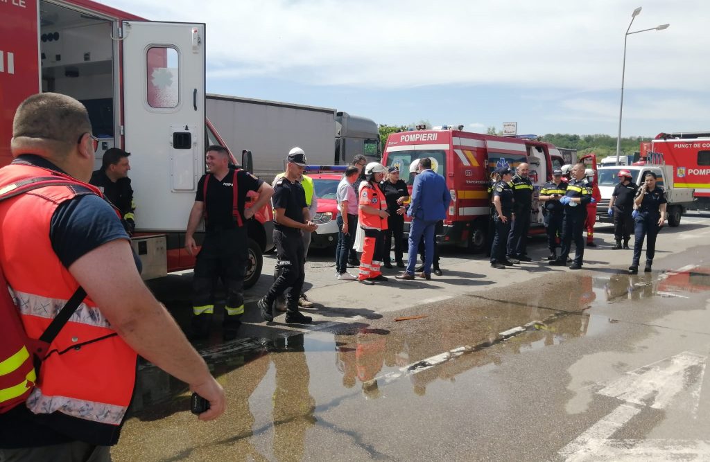 Un bărbat intubat, ventilat mecanic, a fost preluat de elicopterul SMURD și transportat la spital.
