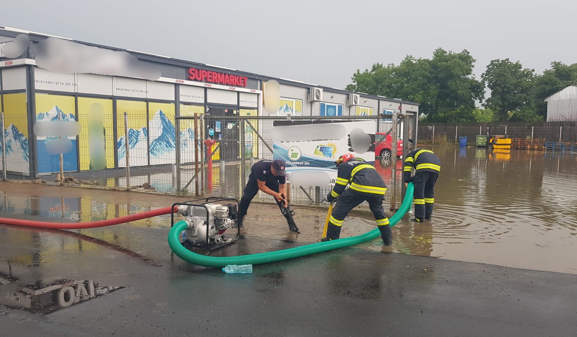 - la Ștefănești, pentru evacuarea apei dintr-un supermarket și curtea acestuia. Au intervenit pompierii din cadrul Gărzii de Intervenție Ștefănești, cu o autospecială și o motopompă.