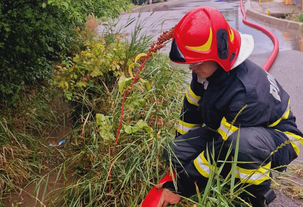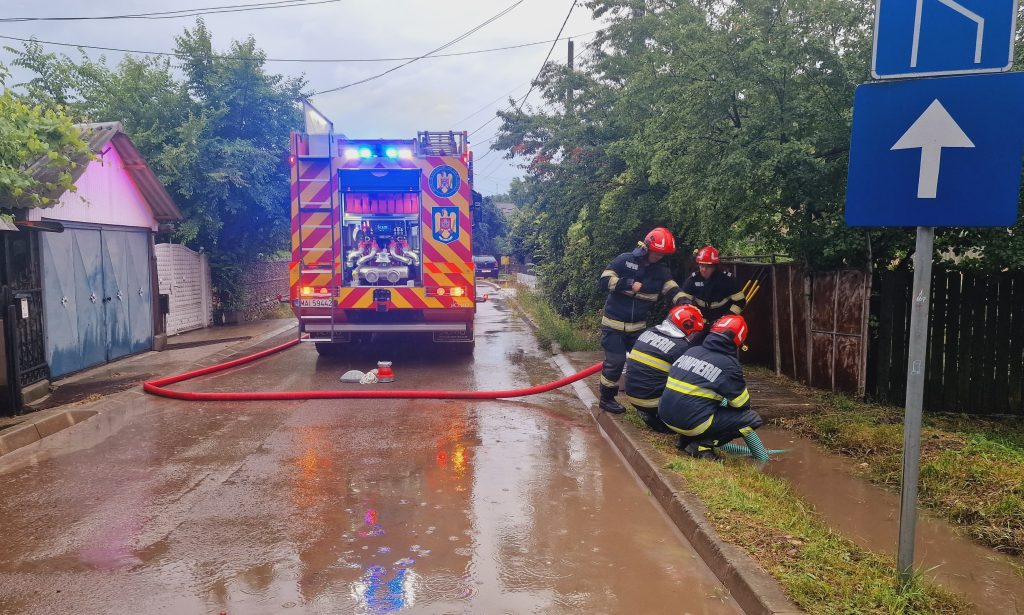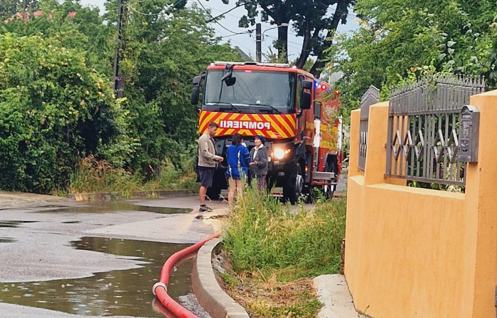 În urma averselor torențiale ce au căzut în această după-amiază, pompierii au fost solicitați să intervină pentru evacuarea apei din cinci gospodării, astfel: