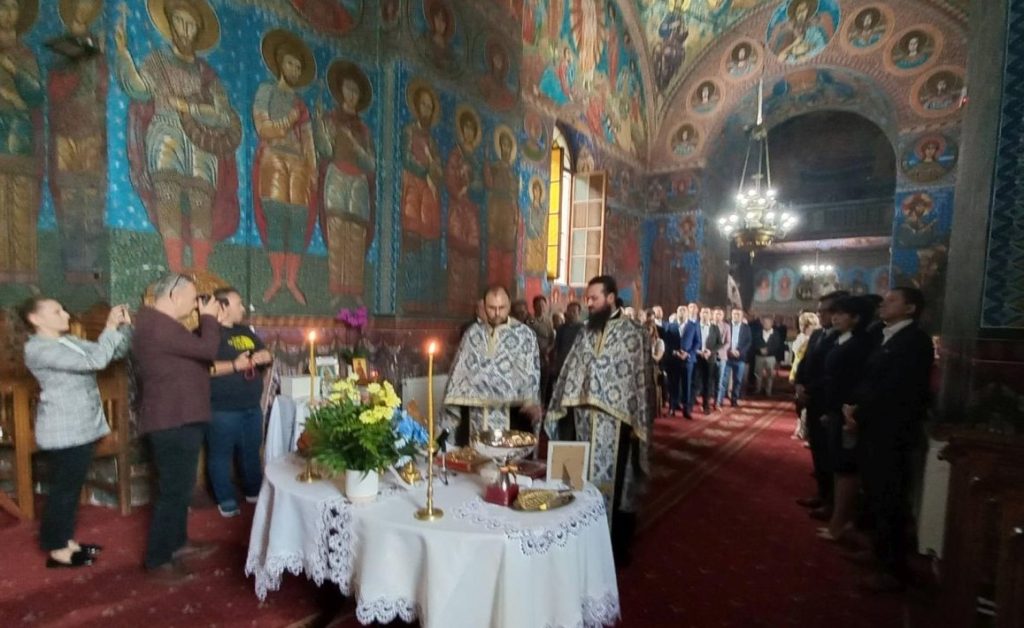 Începând cu ora 9.00, ierarhii au săvârșit Sfânta și Dumnezeiasca Liturghie, împreună cu soborul slujitor, în prezența unei mulțimi de credincioși veniți să-l cinstească pe Sfântul Mare Mucenic Gheorghe, ocrotitorul lăcașului de cult și al orașului.