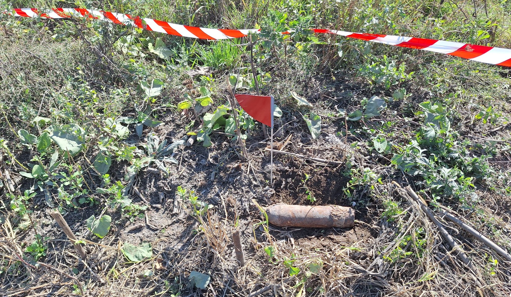 - Muniția și elementele de muniţie erau îngropate parțial în pământ.