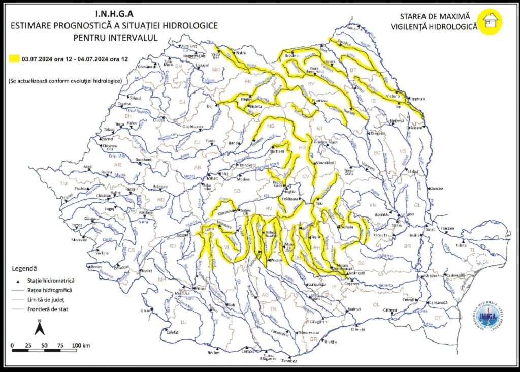 Fenomenele prognozate sunt „scurgeri importante pe versanţi, torenţi şi pâraie, viituri rapide pe râurile mici cu posibile efecte de inundaţii locale și creșteri de debite și niveluri pe unele râuri din bazinele hidrografice menționate, cu posibile depășiri ale COTELOR DE ATENȚIE”.