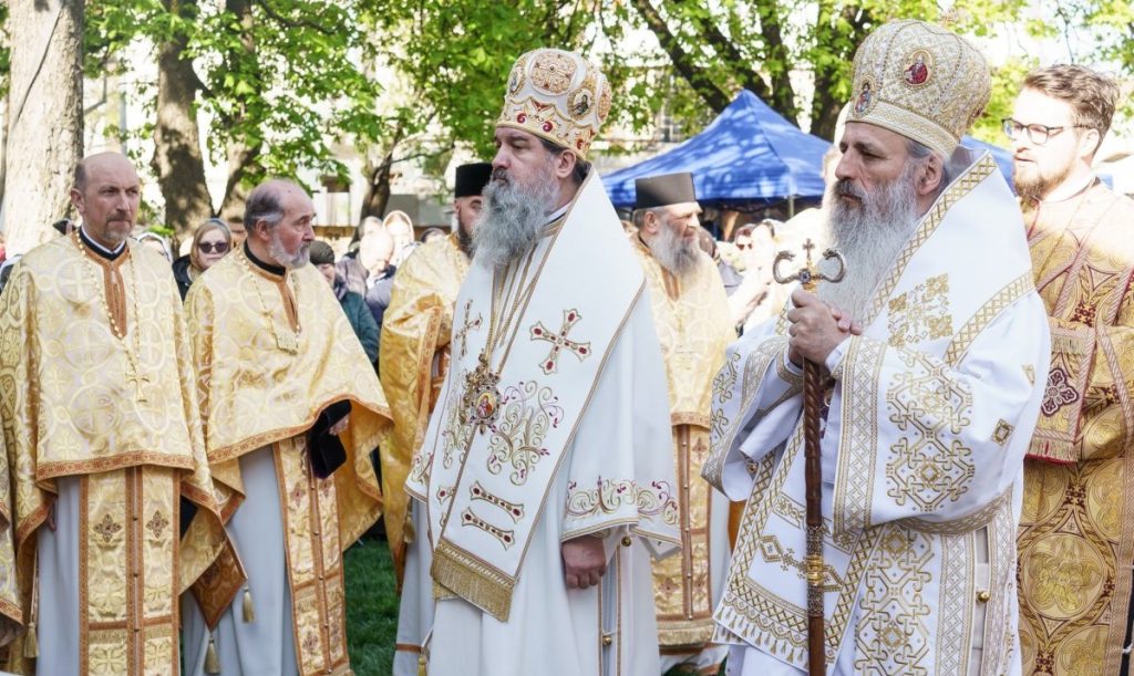 Începând cu ora 9.00, ierarhii au săvârșit Sfânta și Dumnezeiasca Liturghie, împreună cu soborul slujitor, în prezența unei mulțimi de credincioși veniți să-l cinstească pe Sfântul Mare Mucenic Gheorghe, ocrotitorul lăcașului de cult și al orașului.