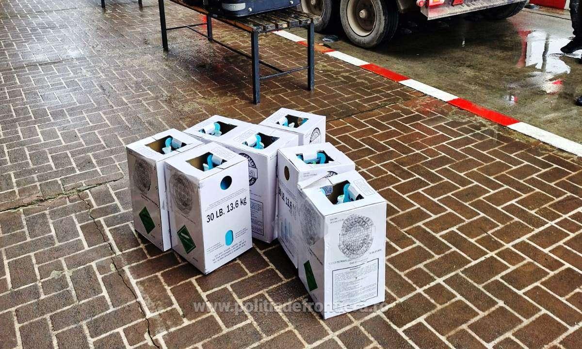 Polițiștii de frontieră din cadrul Punctului de Trecere a Frontierei Stânca au descoperit, în urma unui control efectuat asupra unui ansamblu auto condus de un bărbat cu cetățenie română, șapte cutii ce conțineau butelii de freon de aproximativ 95,2 kg.