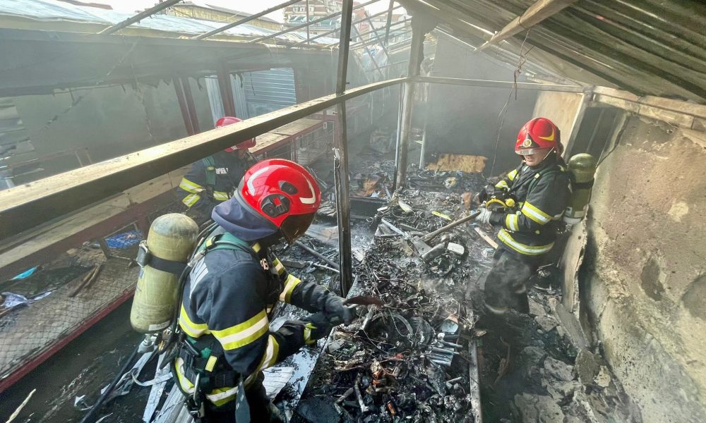 Chioșc metalic din Piața Centrală a municipiului Botoșani, distrus în totalitate de un incendiu (foto)