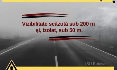 Meteorologii au emis un Cod galben de ceață pentru județul Botoșani, valabil până la ora 10:00. Din această cauză, pe drumurile din județ se va reduce...