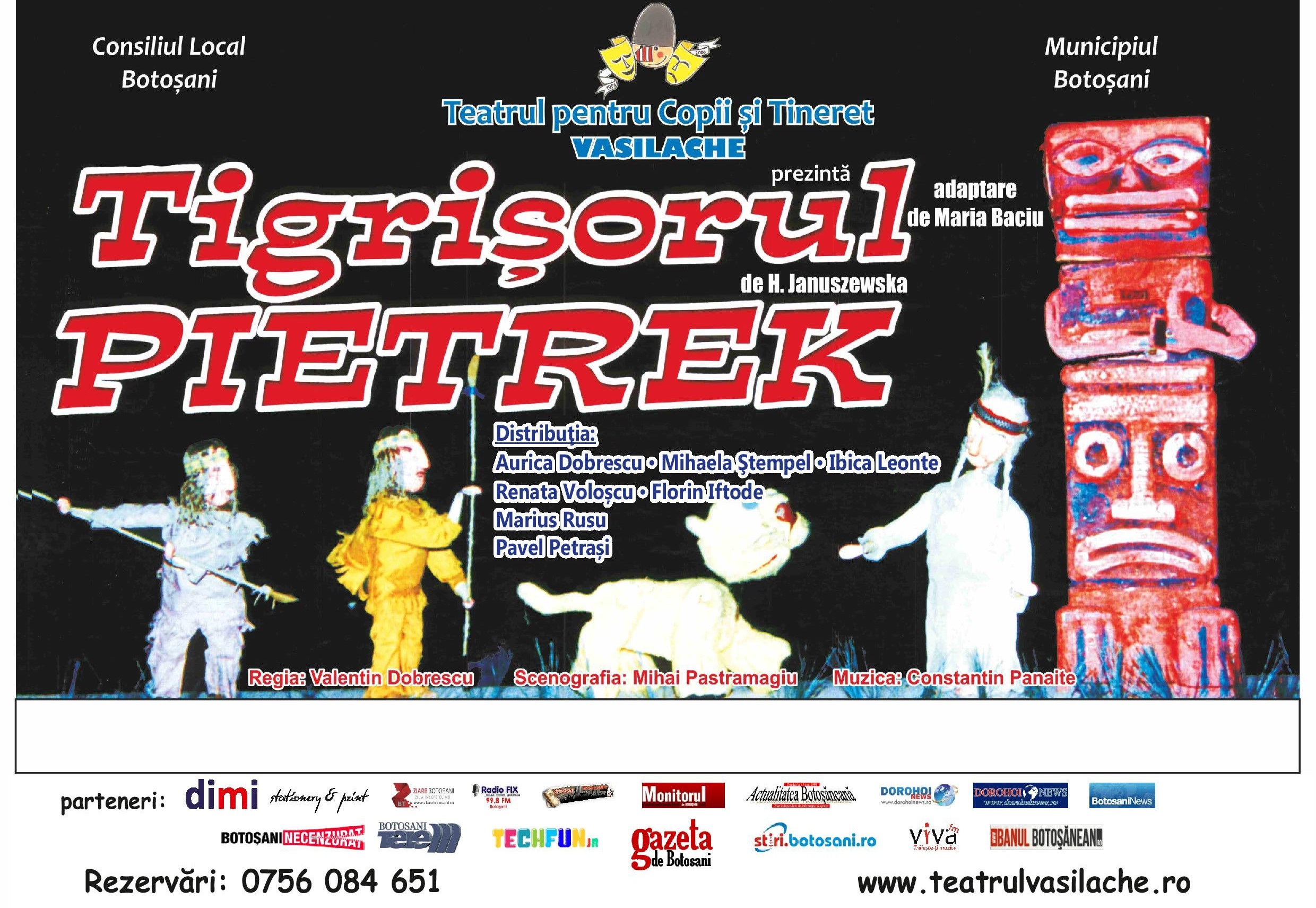 „Tigrişorul Pietrek” este un spectacol după H. Januszewska, cu o adaptare de Maria Baciu, regia artistică Valentin Dobrescu, scenografia este semnată de Mihai Pastramagiu, iar muzica îi aparţine lui Constantin Panaite.