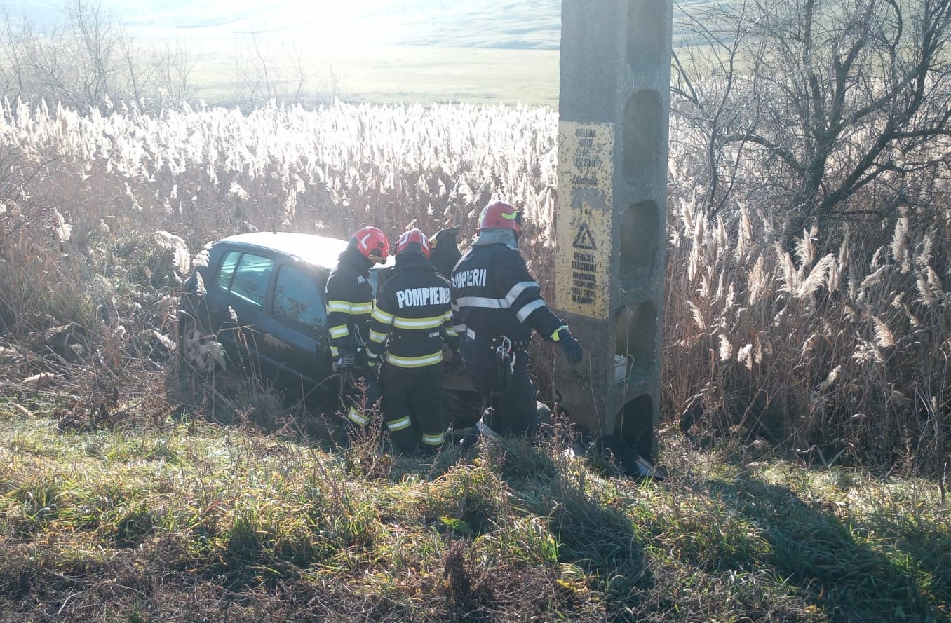Un șofer în vârstă a ajuns la spital, după ce s-a izbit cu mașina pe care o conducea într-un stâlp (foto)