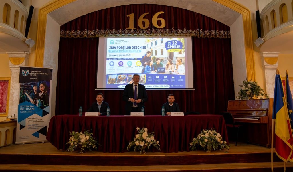 În data de 22 aprilie 2026, Universitatea „Alexandru Ioan Cuza” din Iași (UAIC) a organizat, în Aula Magna a Colegiului Național „A.T. Laurian” din Botoșani, evenimentul „Ziua Porților Deschise la Extensia UAIC din Botoșani”, conceput ca un cadru de informare, consultare și dialog între universitate și comunitatea locală.