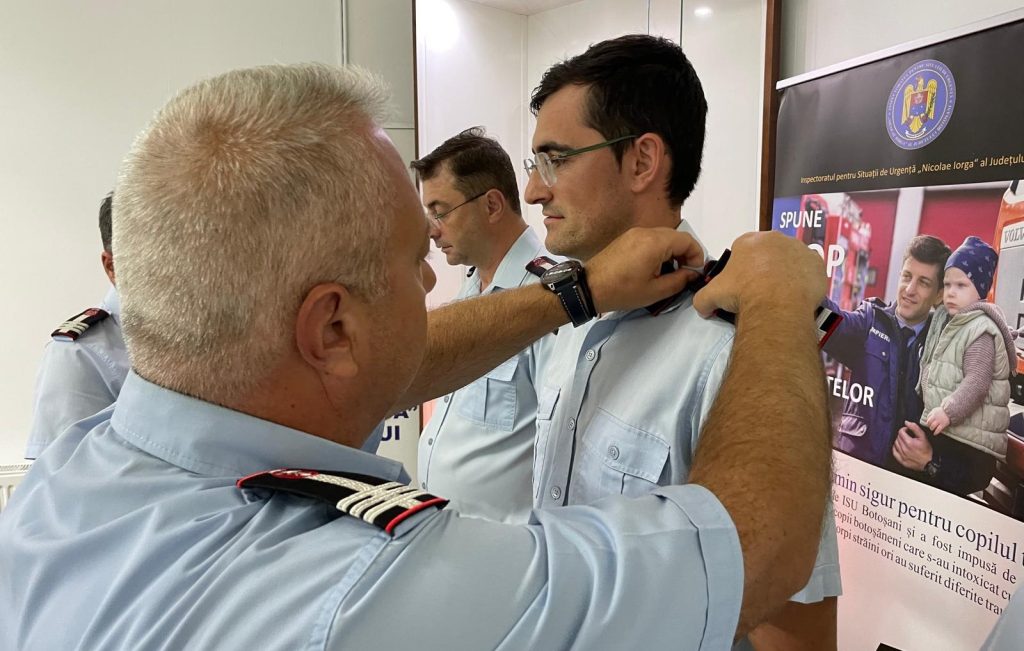 Anual, în prima zi din august, cadrele militare din Inspectoratul pentru Situații de Urgență „Nicolae Iorga” al Județului Botoșani, care îndeplinesc condițiile și au împlinit stagiul minim în grad, se înaintează în gradul militar următor, la termen, arată reprezentanții instituției.